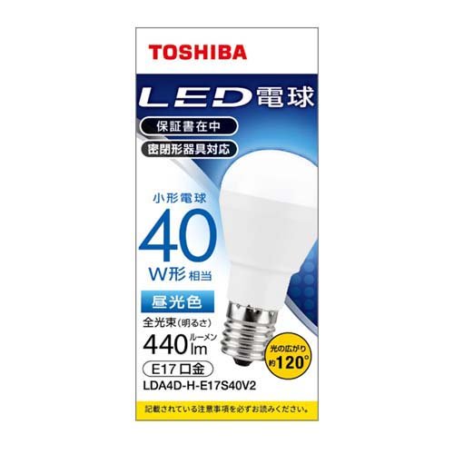 LDA4D-H-E17/S/40Cは下方配光タイプのLED電球で、口金サイズがE17、色は昼光色です。