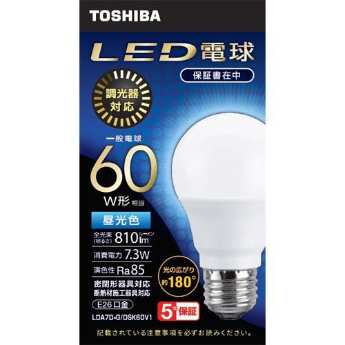 TOSHIBAの同等スペックのLED電球で、配光角が180度と40度ほど狭いモデルです。断熱材施工器具で使えるモデルです。
